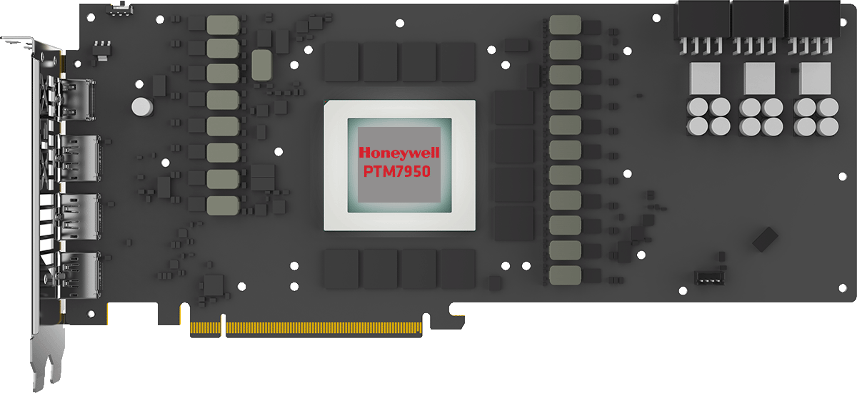 Standard on all XFX Magnetic Air models, we have switch to PTM7950 for the TIM. Honeywell PTM7950 has proven to be efficient and long lasting.