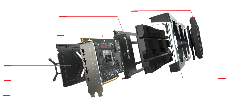 The RX 6800 series from AMD features a premium heatsink shroud with custom-designed triple axial fans, providing outstanding cooling and quiet performance.