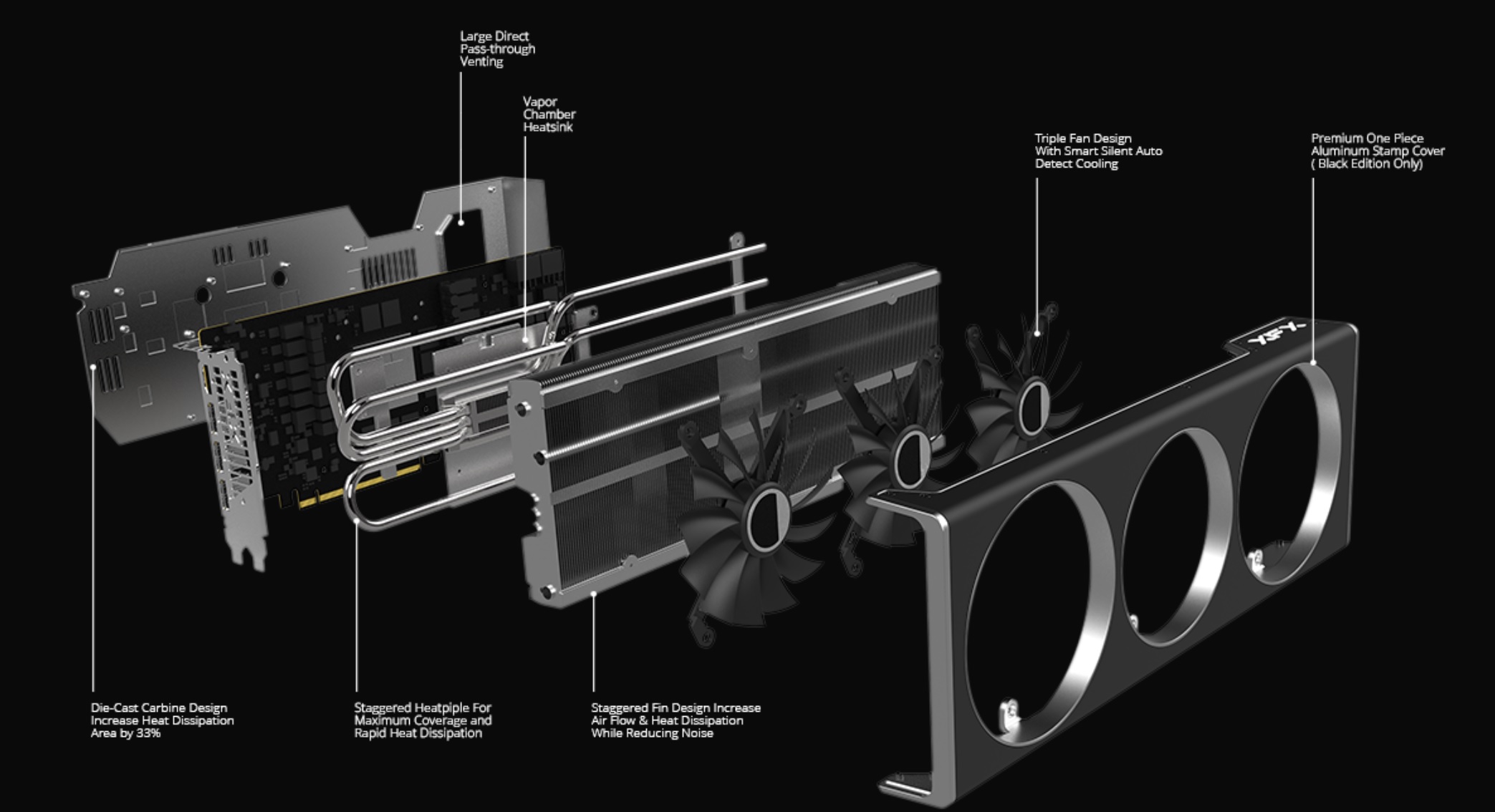Our new design features a straight-through airflow venting to significantly improve cooling and compliments the open design of the Ghost Thermal floating shroud design along with numerous other cooling features.