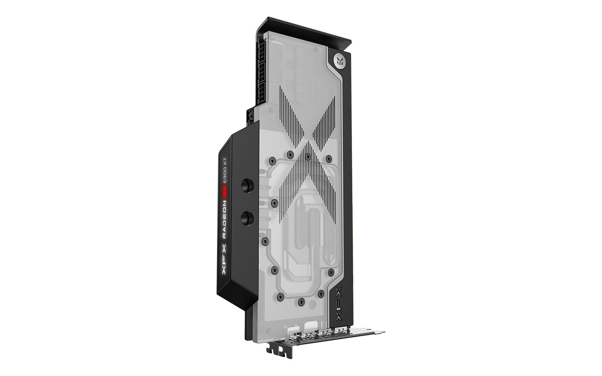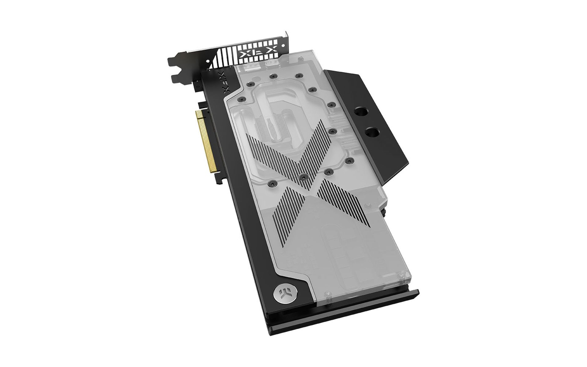 We partnered with EK, the undisputed leader in GPU liquid cooling, to design and build this one of a kind, high quality, high performance GPU and EK waterblock combo to push the performance of the 6000 series beyond its limits with the highest overclocking potential available today for any Radeon RX GPU. a. The base of the block is CNC-machined out of nickel-plated high-grade copper, while its top is CNC-machined out of glass-like cast Acrylic. The watertight sealing is ensured by high-quality EPDM O-rings, while brass standoffs are already pre-installed and allow for a safe and easy installation procedure.